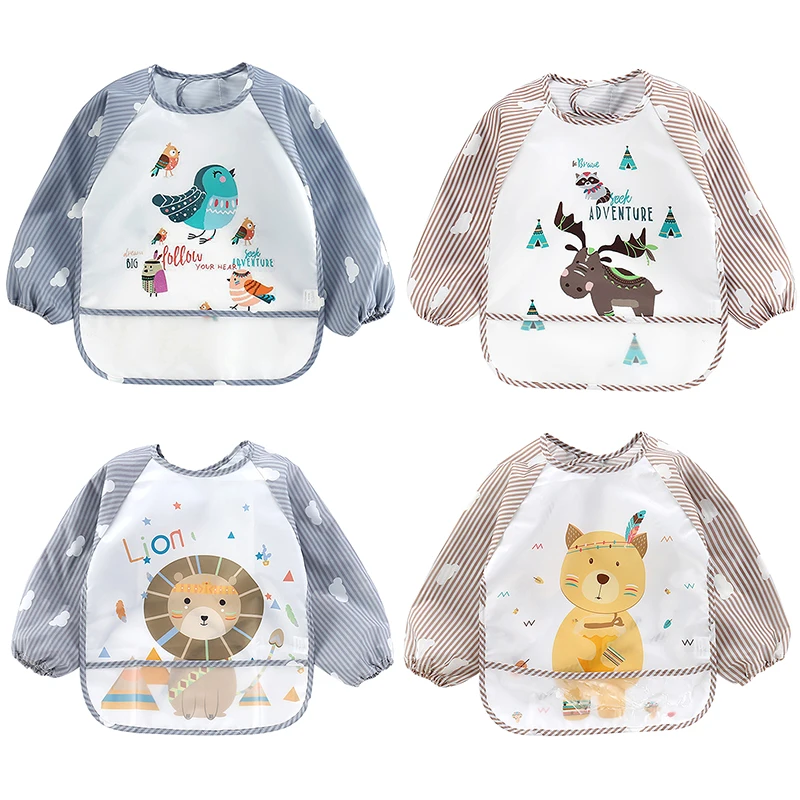 Apropiado artículo y envío rápido. vendedor recomendado para Baberos suaves de dibujos animados para niños, delantal de Arte de manga larga impermeable, bata de dibujos animados para bebé, ropa de comer para bebé, babero Unisex